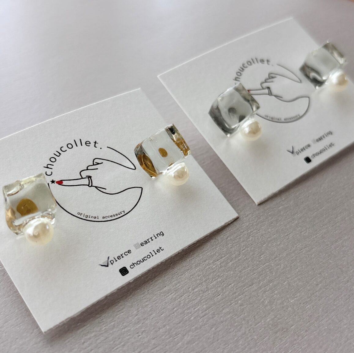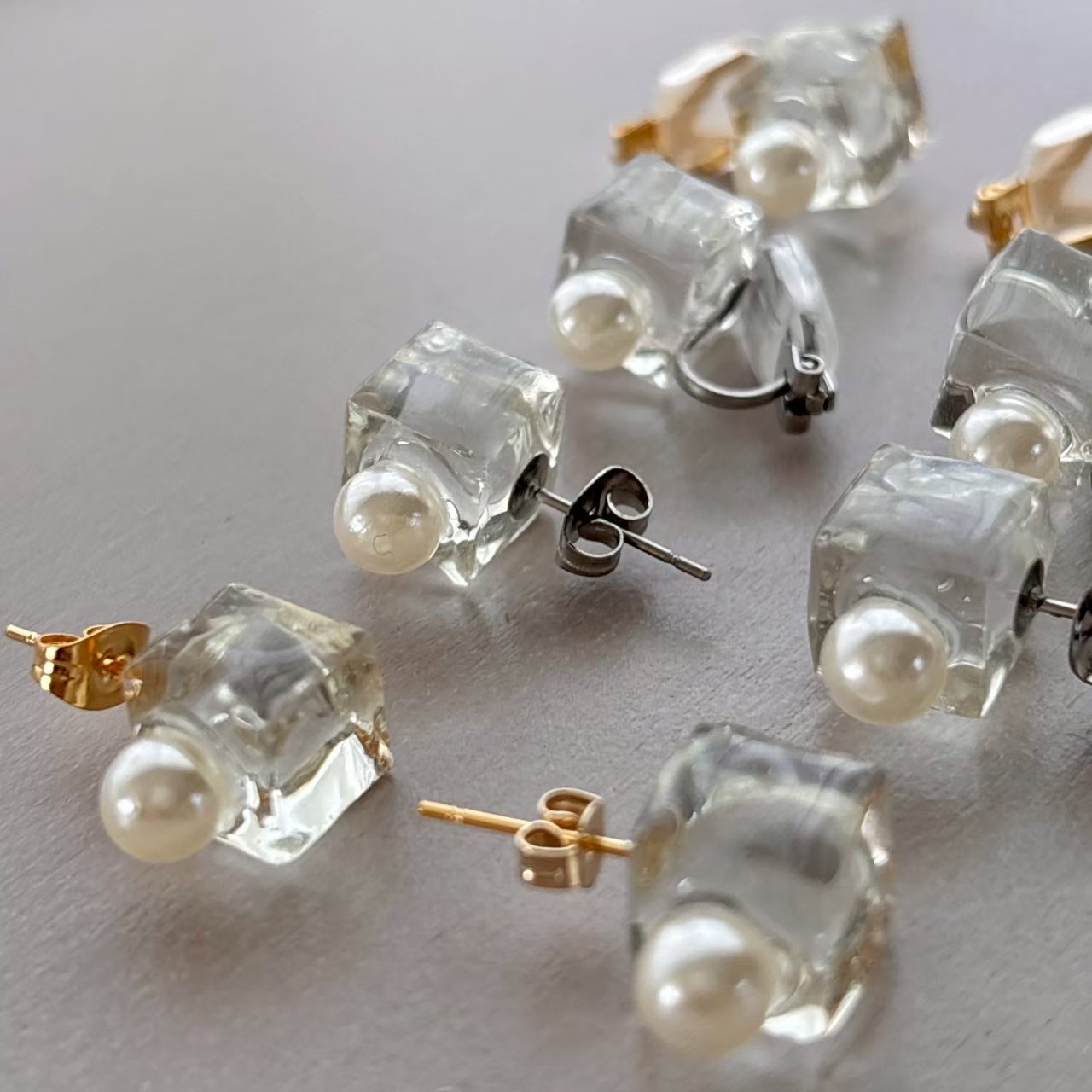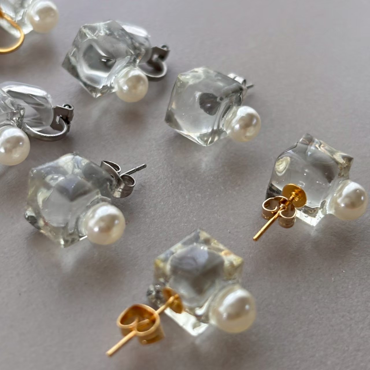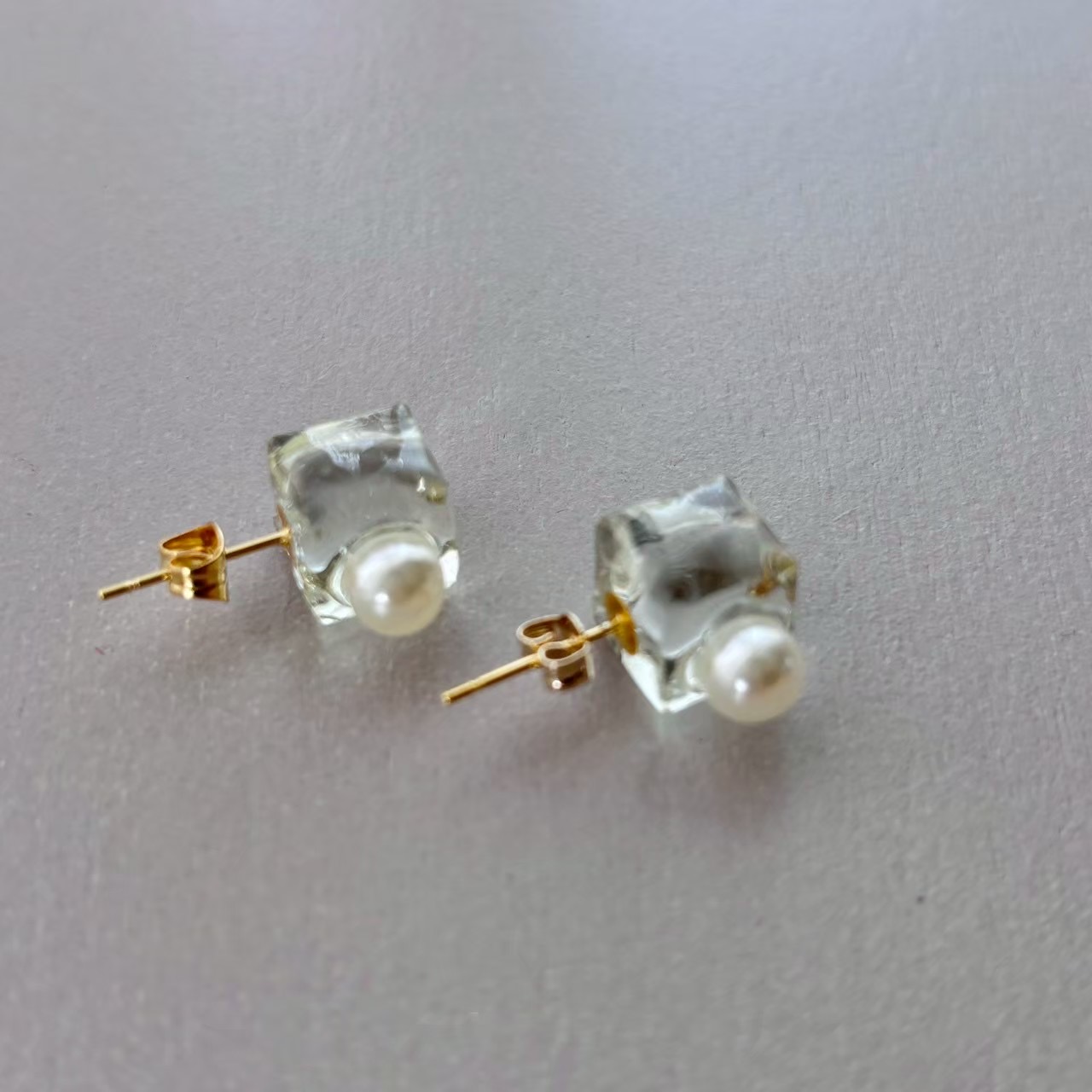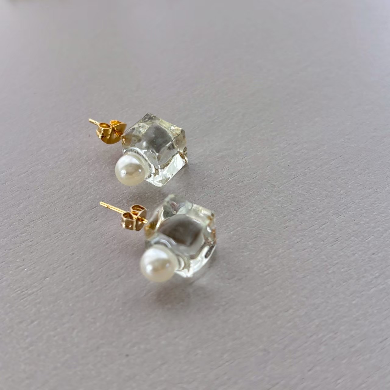 まるで氷のかけらをそのまま閉じ込めたような、クリアなキューブ。