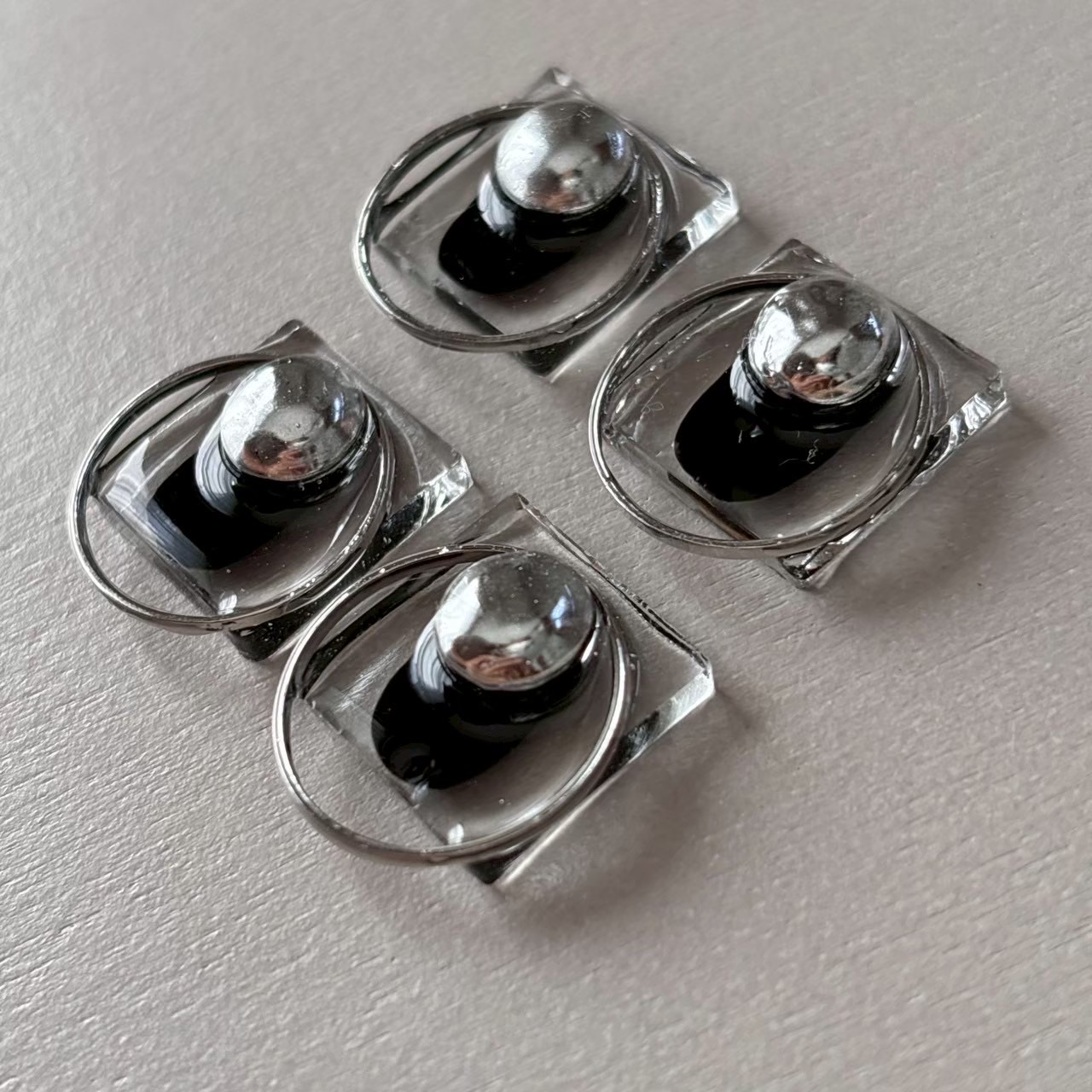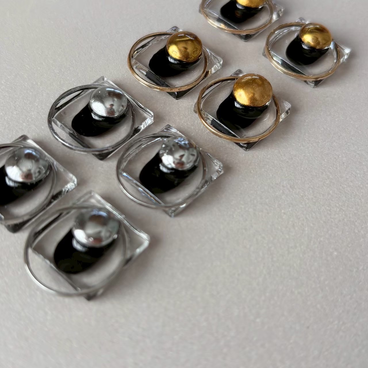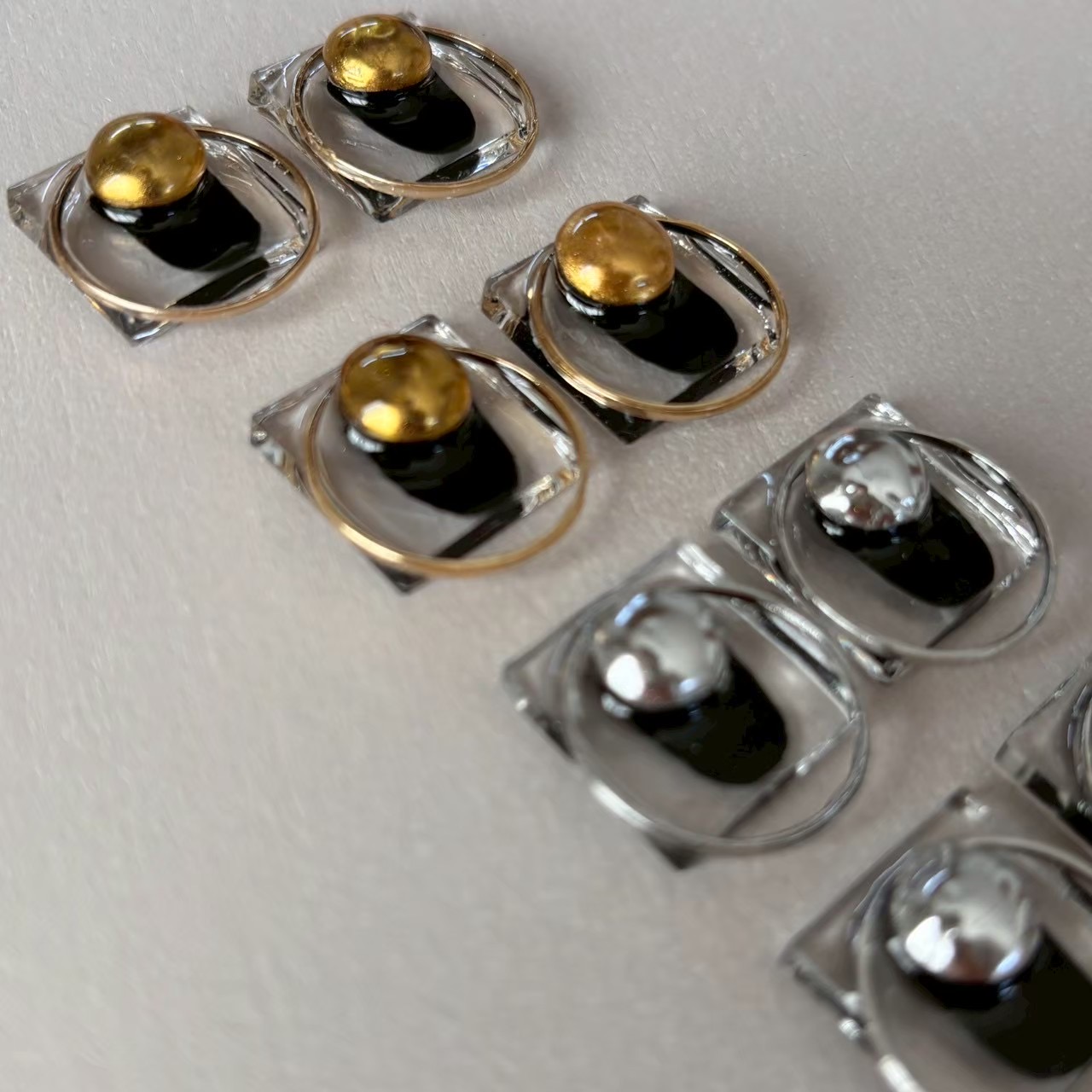 ぷっくりとした艶のあるドームと、クリアな樹脂の中に封じ込めた黒のアクセントが、