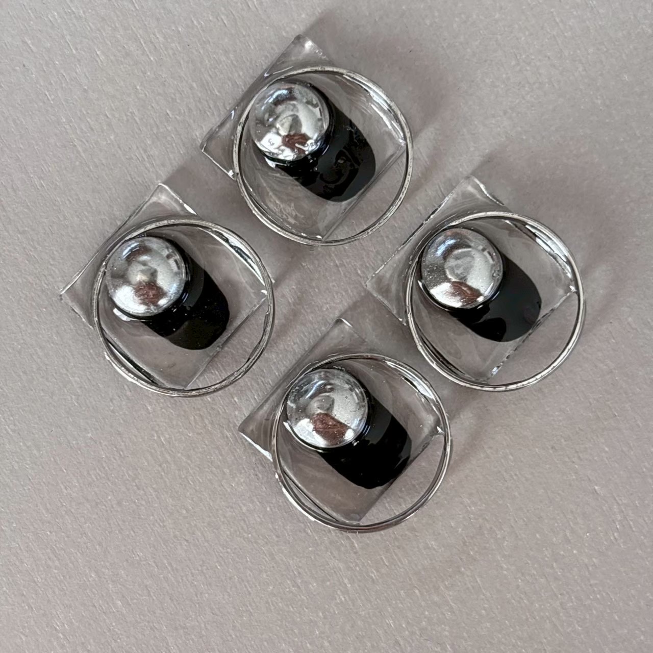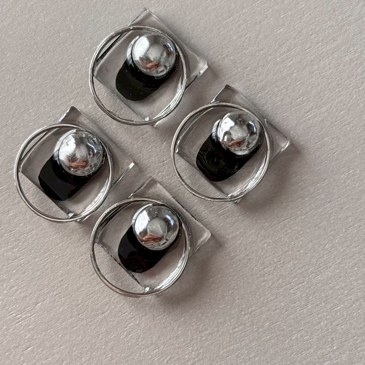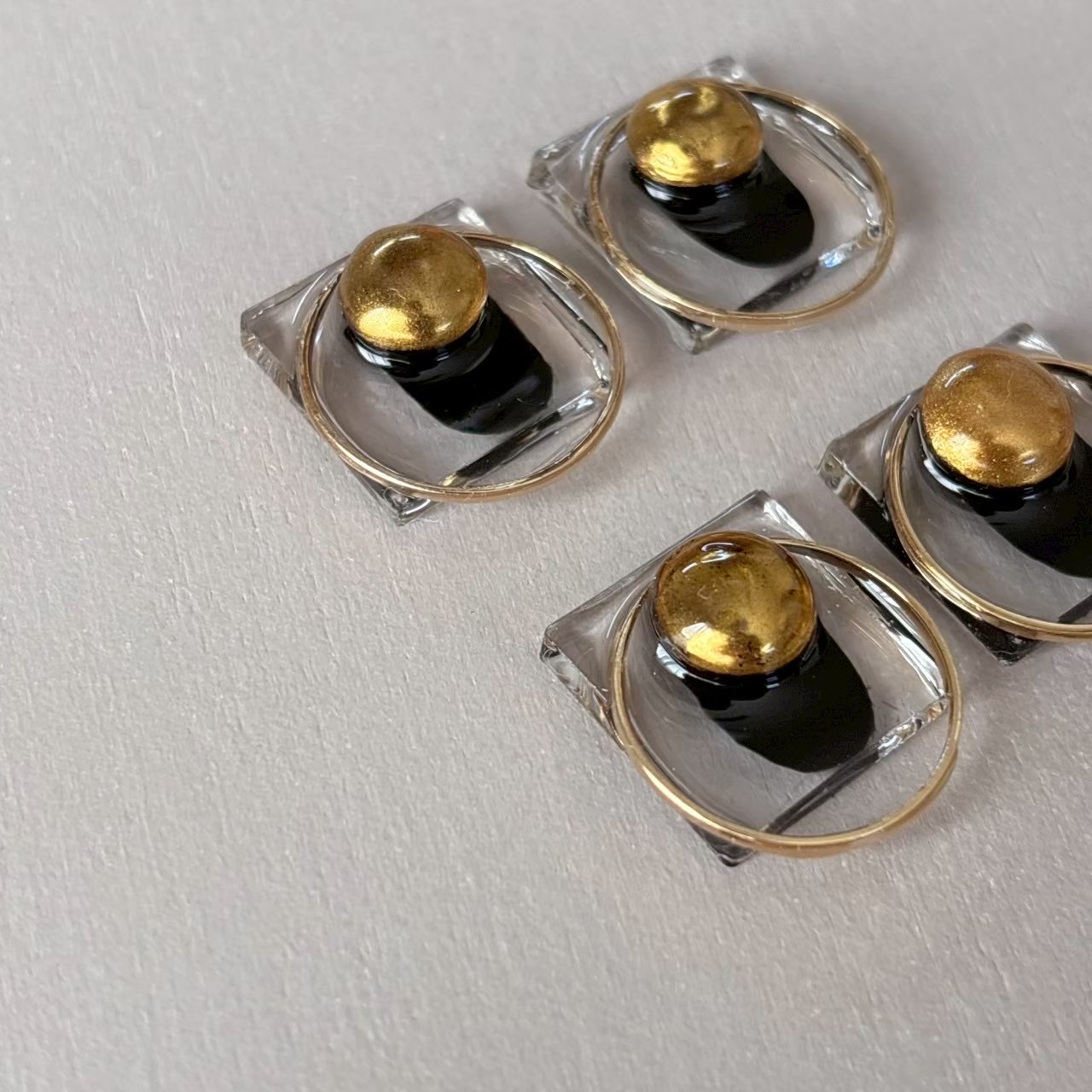 ぷっくりとした艶のあるドームと、クリアな樹脂の中に封じ込めた黒のアクセントが、