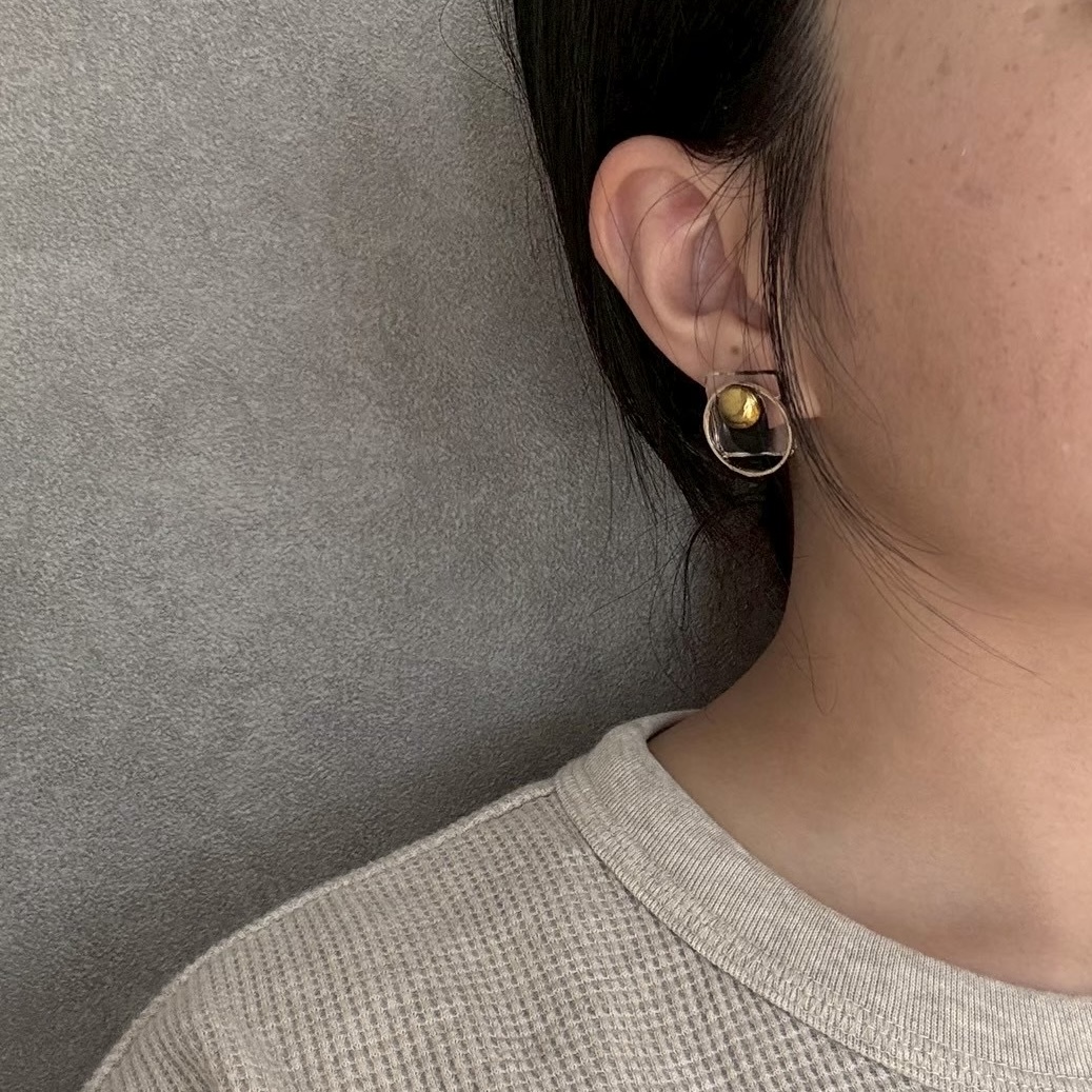 そこに浮かぶメタリックなサークルが、耳元に洗練された個性を添えるアクセサリーです。